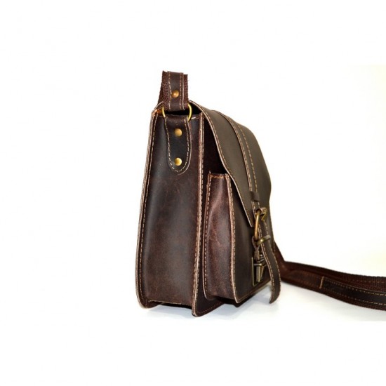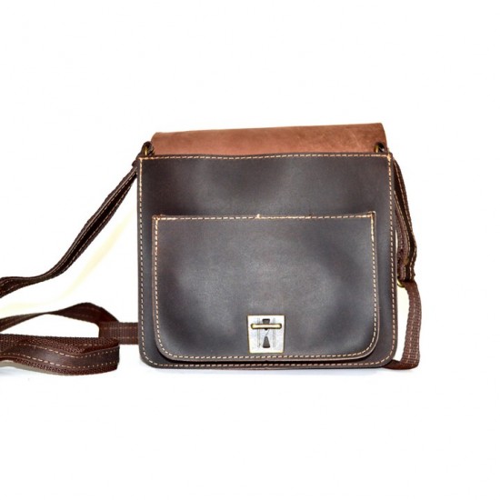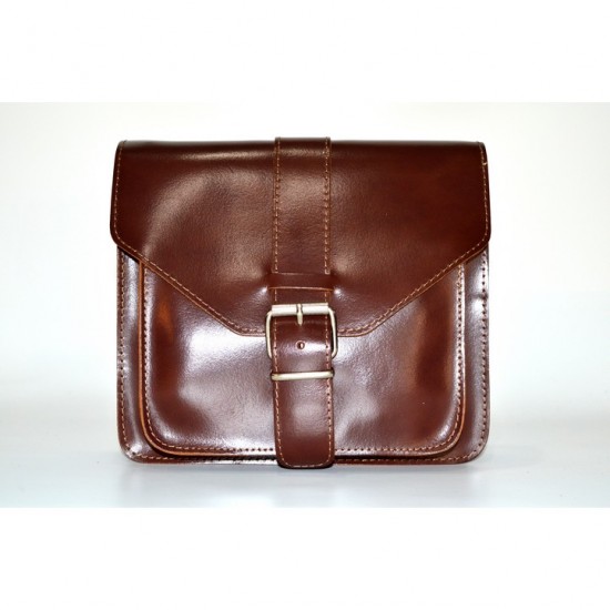 Δερμάτινη ανδρική τσάντα ώμου, (ταχυδρόμου), με καπάκι. Χειροποίητη από 100% γνήσιο δέρμα αρίστης ποιότητας, ελληνικής κατασκευής. Διαθέτει λουρί ώμου που προσαρμόζεται με επένδυση ιμάντα για περισσότερη αντοχή. Κλείνει με βατραχάκι.