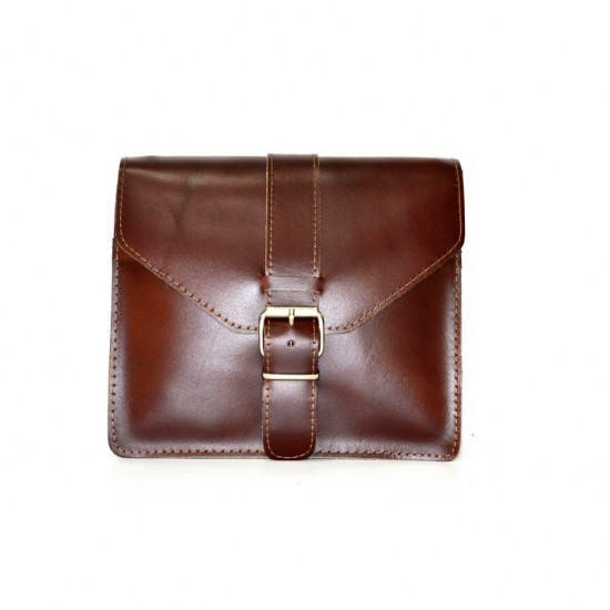 Δερμάτινη ανδρική τσάντα ώμου, (ταχυδρόμου), με καπάκι. Χειροποίητη από 100% γνήσιο δέρμα αρίστης ποιότητας, ελληνικής κατασκευής. Διαθέτει λουρί ώμου που προσαρμόζεται με επένδυση ιμάντα για περισσότερη αντοχή. Κλείνει με βατραχάκι.