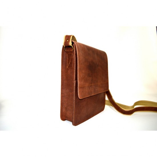 Δερμάτινη ανδρική τσάντα ώμου, (ταχυδρόμου), με κοντό καπάκι. Χειροποίητη από 100% γνήσιο δέρμα αρίστης ποιότητας, Ελληνικής κατασκευής. Διαθέτει λουρί ώμου που προσαρμόζεται με επένδυση ιμάντα για περισσότερη αντοχή. Κλείνει με μαγνήτη. Διατίθεται και με διπλό χώρισμα εδώ