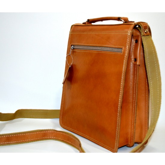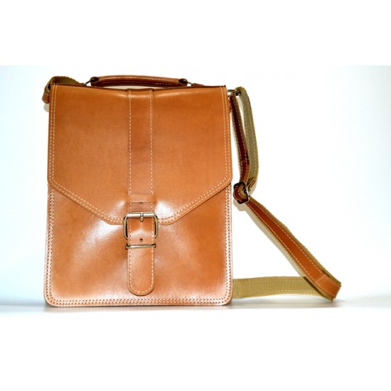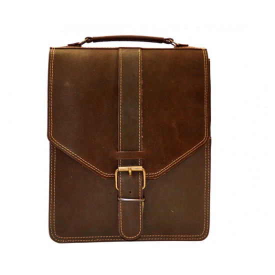 Δερμάτινη ανδρική τσάντα ώμου, (ταχυδρόμου), με καπάκι.